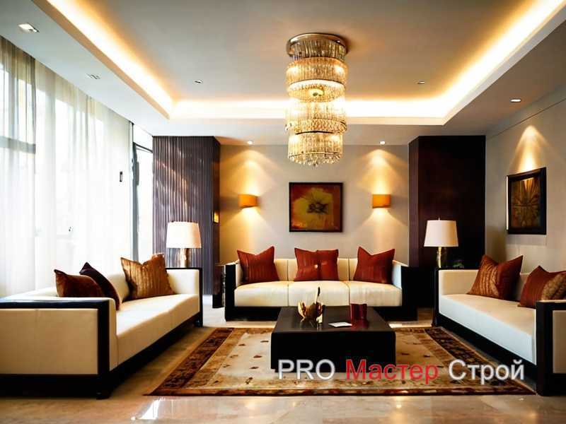 Матовые поверхности делают интерьер мягче, а глянцевые усиливают отражающий эффект, что особенно полезно в помещениях без окон. Подвесные элементы с металлическими деталями холодных оттенков добавляют глубины, не нарушая гармонию. При этом важно сохранить общий стиль – спокойные цвета, минимальное количество декора и лаконичные формы обеспечивают ощущение порядка и расширяют пространство без потери уюта.